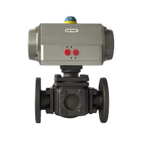 氣動(dòng)三通球閥是AIRTORQU氣動(dòng)執(zhí)行機(jī)構(gòu)和三通法蘭球閥組成。根據(jù)管道中不同的介質(zhì)選用密封材質(zhì)。氣動(dòng)三通球閥分"T"型三通球閥和"L"型三通球閥,具有結(jié)構(gòu)緊湊、外型美觀、密封性能好,它能實(shí)現(xiàn)對(duì)管道中介質(zhì)流向的切換,也能使相互垂直的兩個(gè)通道連通或關(guān)閉。適用于供水、石化、冶金、礦山、輕紡、能源、造紙、食品、鋼鐵等管路系統(tǒng)中對(duì)介質(zhì)流向進(jìn)行切換以及對(duì)介質(zhì)的分流或混合流體。